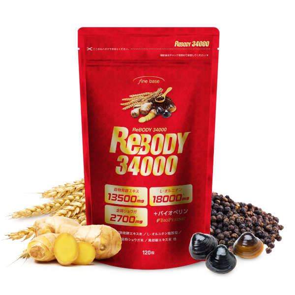 サプリメントを選ぶ基準として、重要なのが成分含有量。しかし、実際には「○○配合!」とは書かれていても、「○○mg配合」とは書かれていない商品が多々あります。何故か…。理由はひとつではありませんが、明示しなくても良いというルールであるため配合量をしっかり把握することが大切です。ファインベースの「リボディ34000」は、1粒にオルニチン150mg、穀物発酵エキス112.5mg、金時ショウガ22.5mgしっかり配合。自信を持って成分量を明示できる商品をお届けしております。
